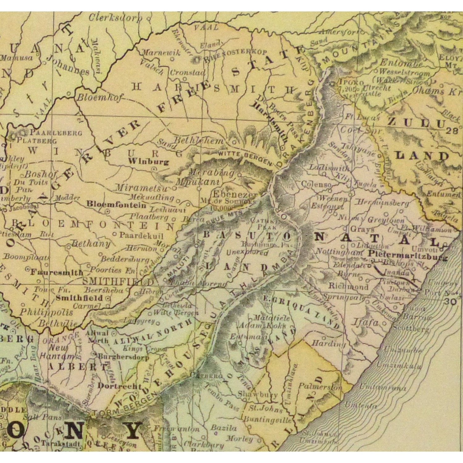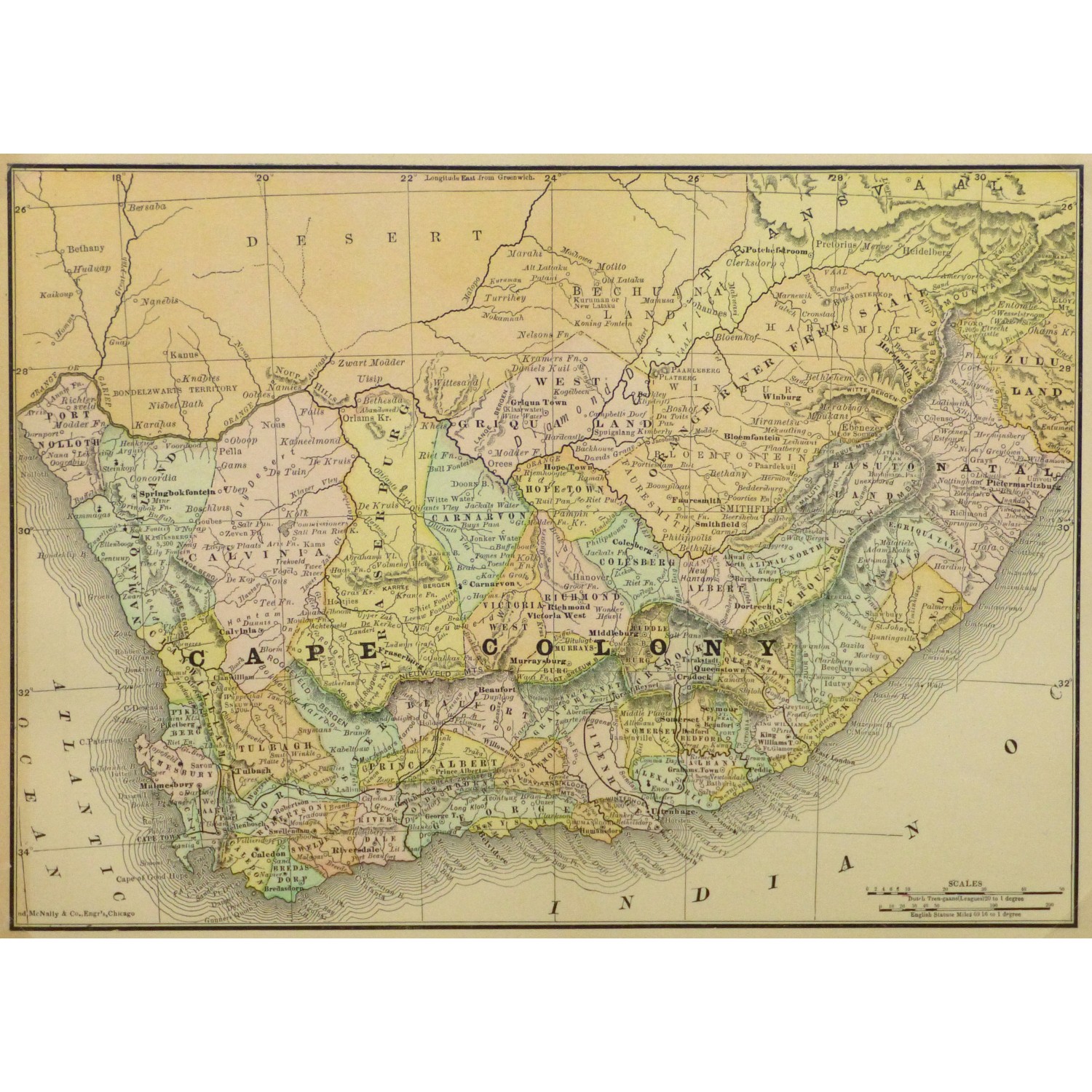Historic and colorful map of Cape Colony, a British colony in present day South Africa, from Rand McNally, 1891.