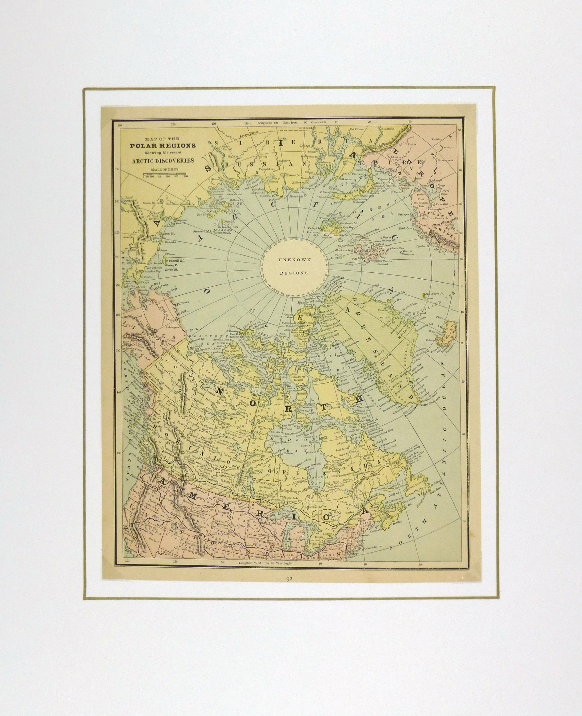 Colorful map of the North Pole with its still unexplored regions from 1886.