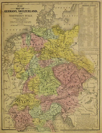 Antique Germany, Switzerland, and Northern Italy map showing the various kingdoms, dukes and republics of Germany and Italy with list upper right, 1840. Also illustrates populations of major cities. Original hand-color.