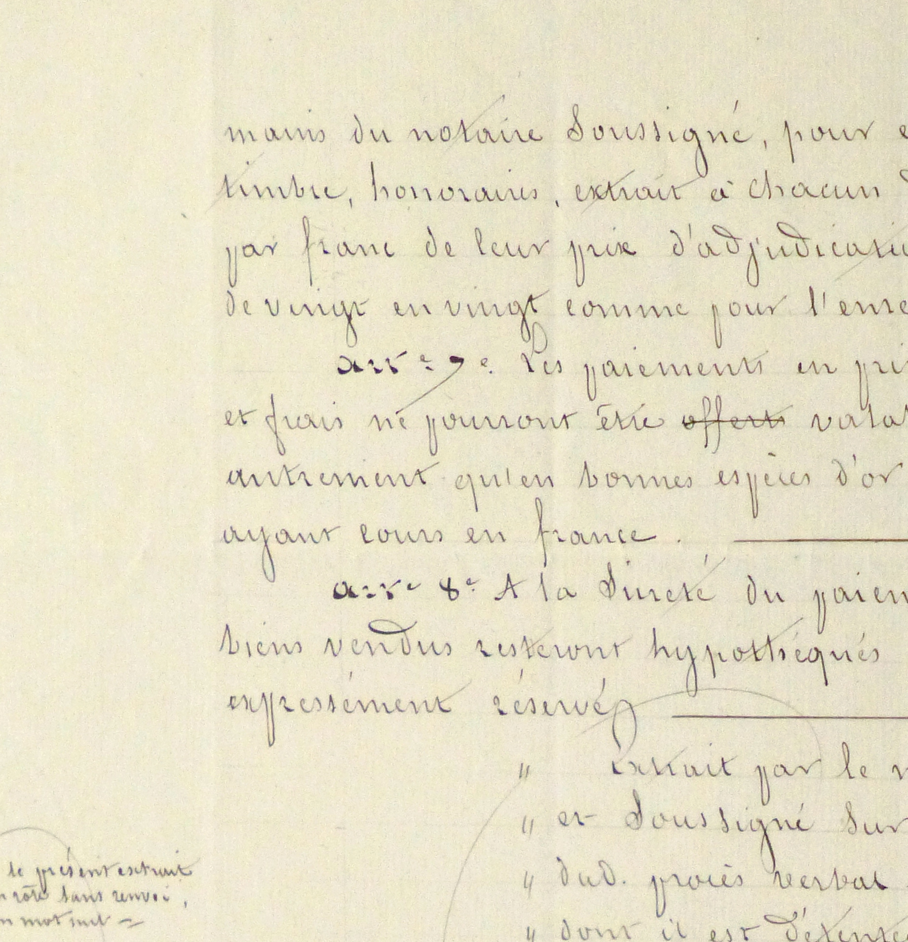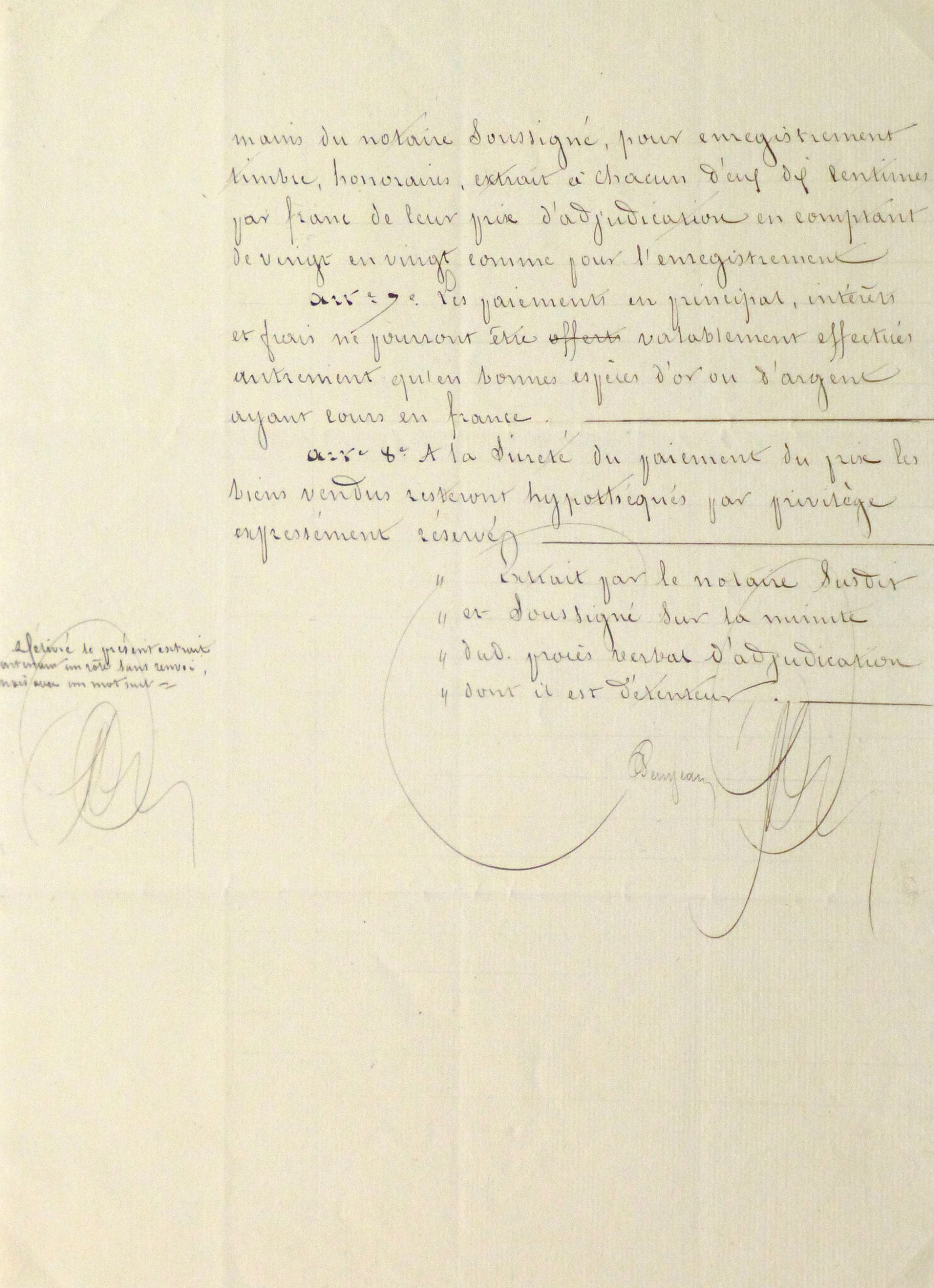 Antique French manuscript concerning the payment of property in gold or silver, 1851. Beautiful penmanship for great decoration. Delightful signature.