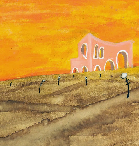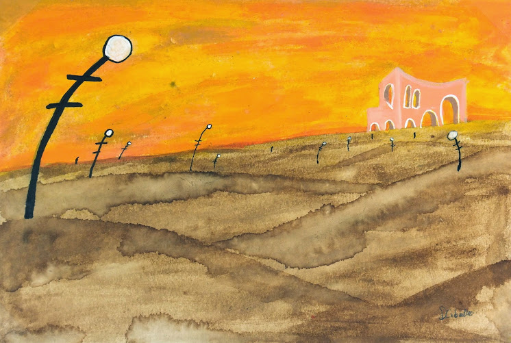 Original painting of a surrealist dreamscape by Mexican artist Dario Cabaliero, 2012. Signed lower right.