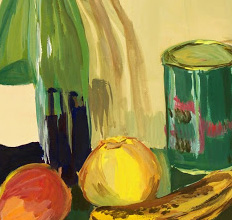 Original oil still life painting featuring wine and assorted fruit, circa 1930.