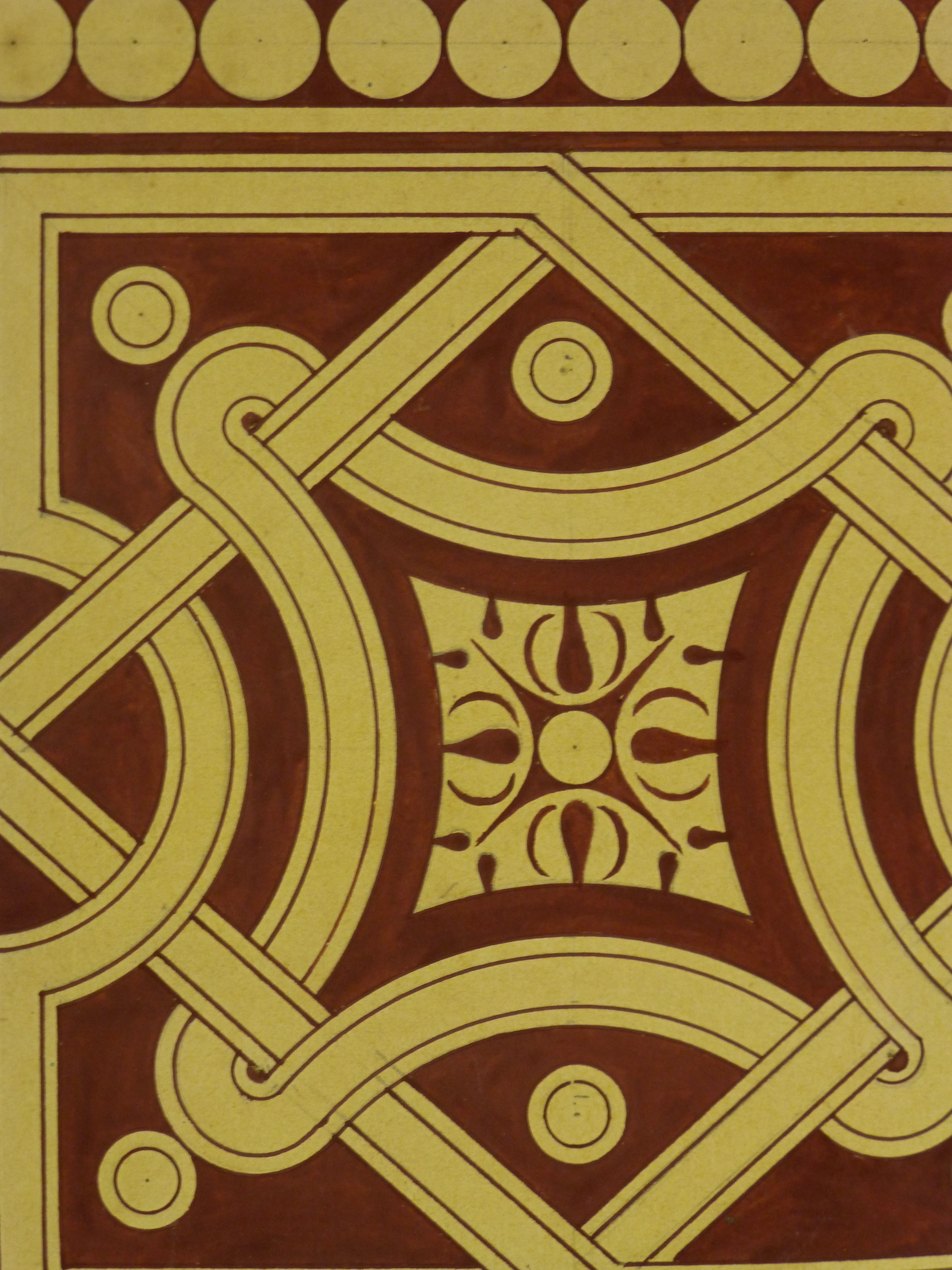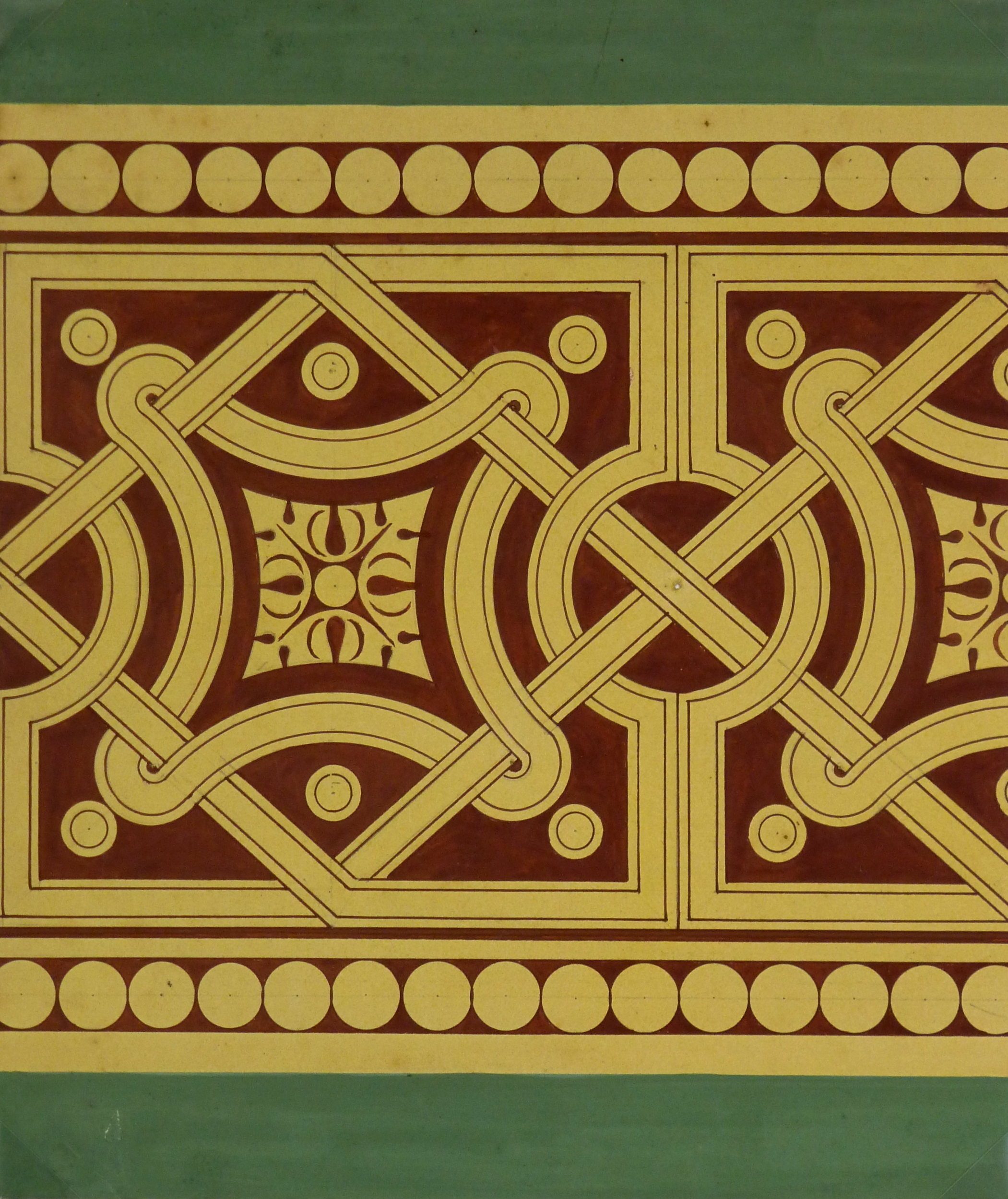 One-of-a-kind painting in the Jugendstil (Art Nouveau) style of fastidiously designed, interlocking decorative elements by Karl Oberle, circa 1900.